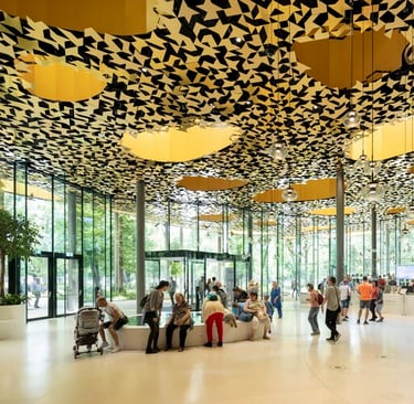 Designed by the visionary Japanese architect Sou Fujimoto, the House of Music opened its doors in January 2022 as one of the crown jewels of the Liget Budapest Project—Europe’s largest cultural urban development. It was created not to merely host music, but to embody it. With a roofline that floats like a leaf in the wind and walls of glass that dissolve into the surrounding trees, it is at once grounded and otherworldly.